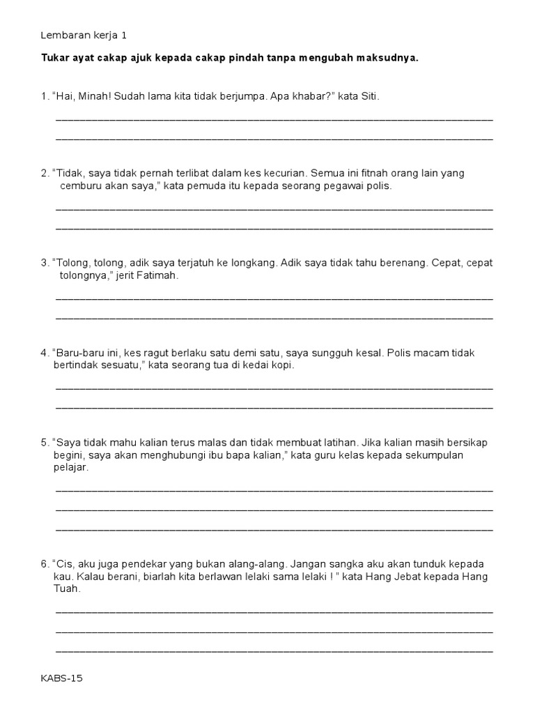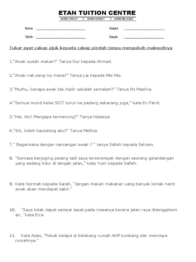 Latihan Pengayaan Ayat Cakap Ajuk Cakap Pindah Pdf