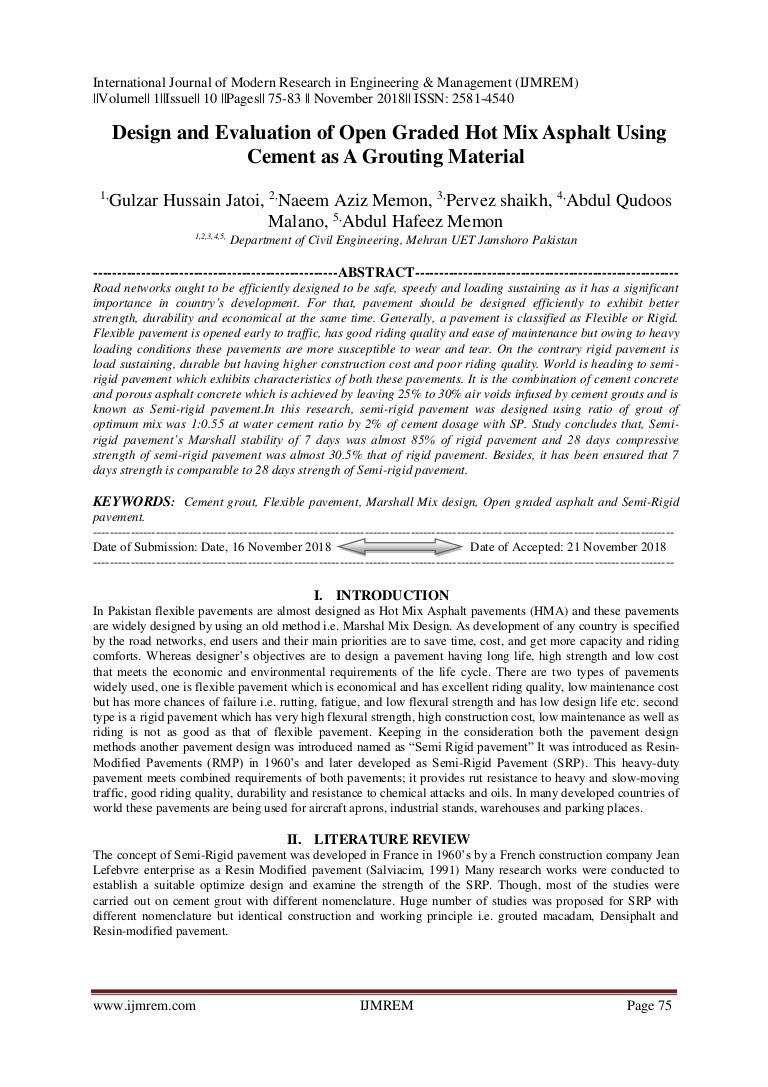 Design And Evaluation Of Open Graded Hot Mix Asphalt Using Cement As