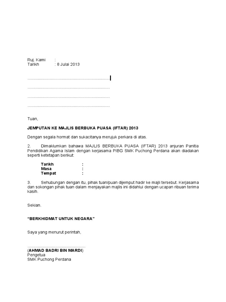 Contoh Surat Jemputan Berbuka Puasa Free Download Images