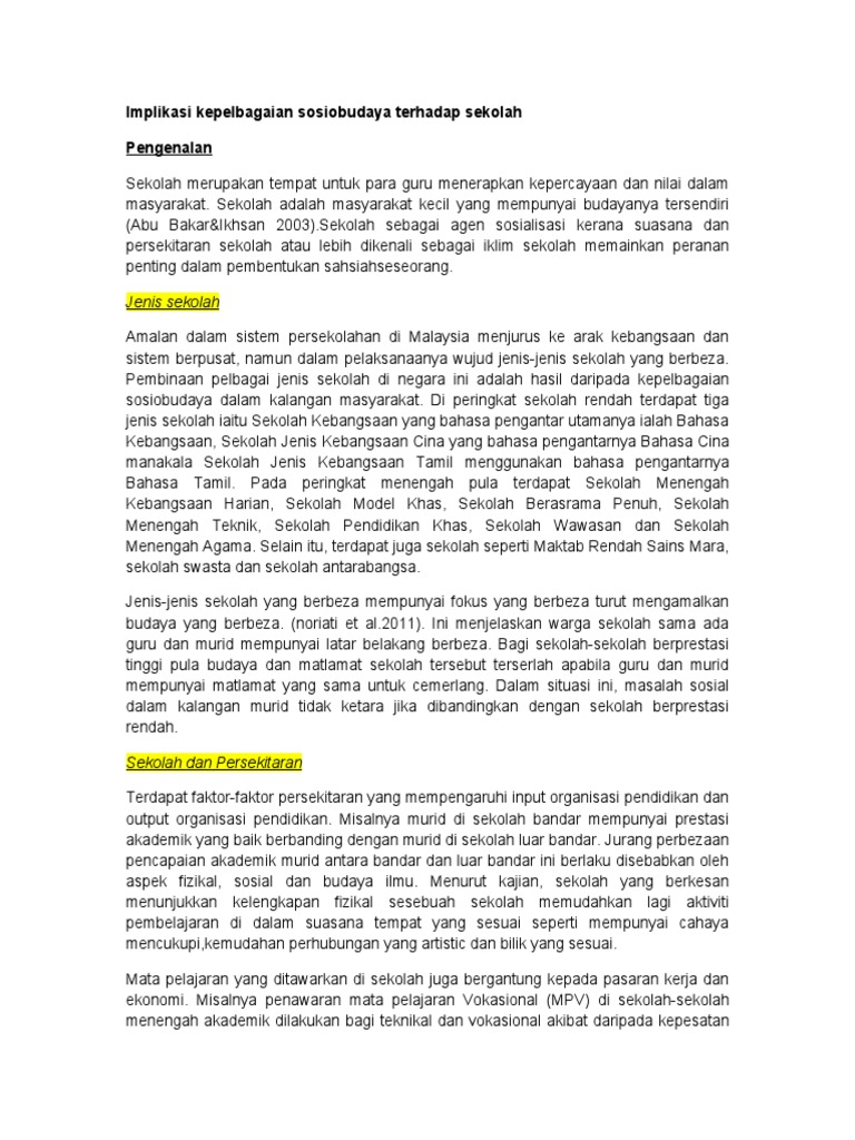 Peranan Dan Implikasi Kepelbagaian Sosiobudaya Dalam Sistem Pendidikan Di Malaysia