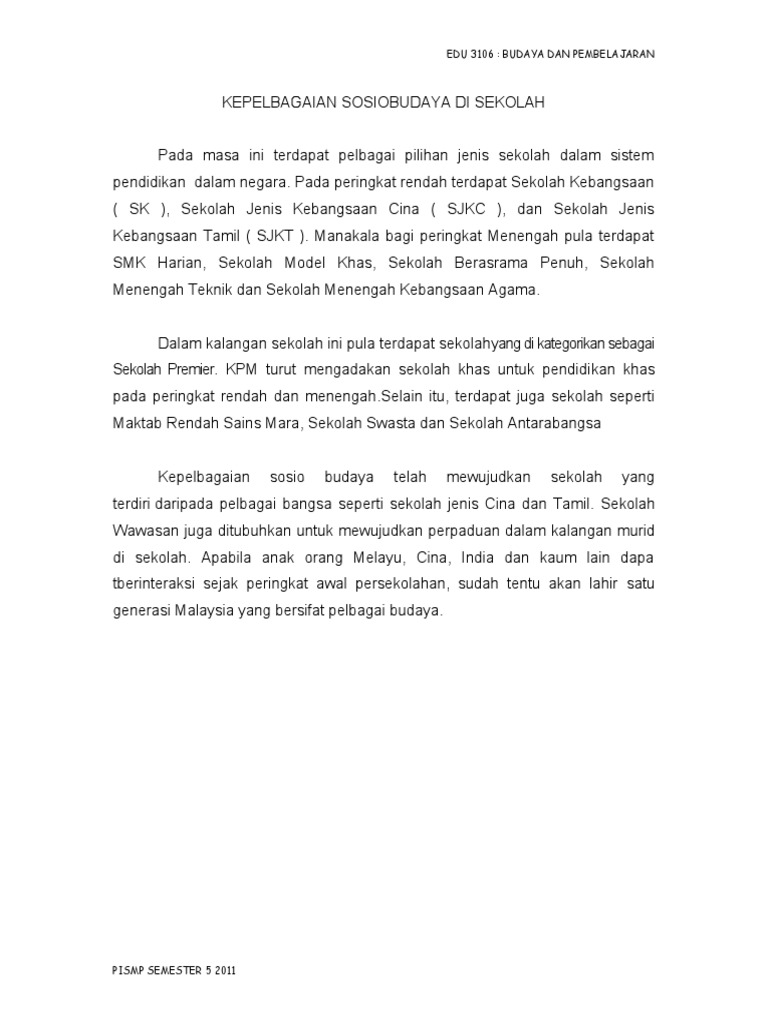 Kepelbagaian Sosiobudaya Di Sekolah