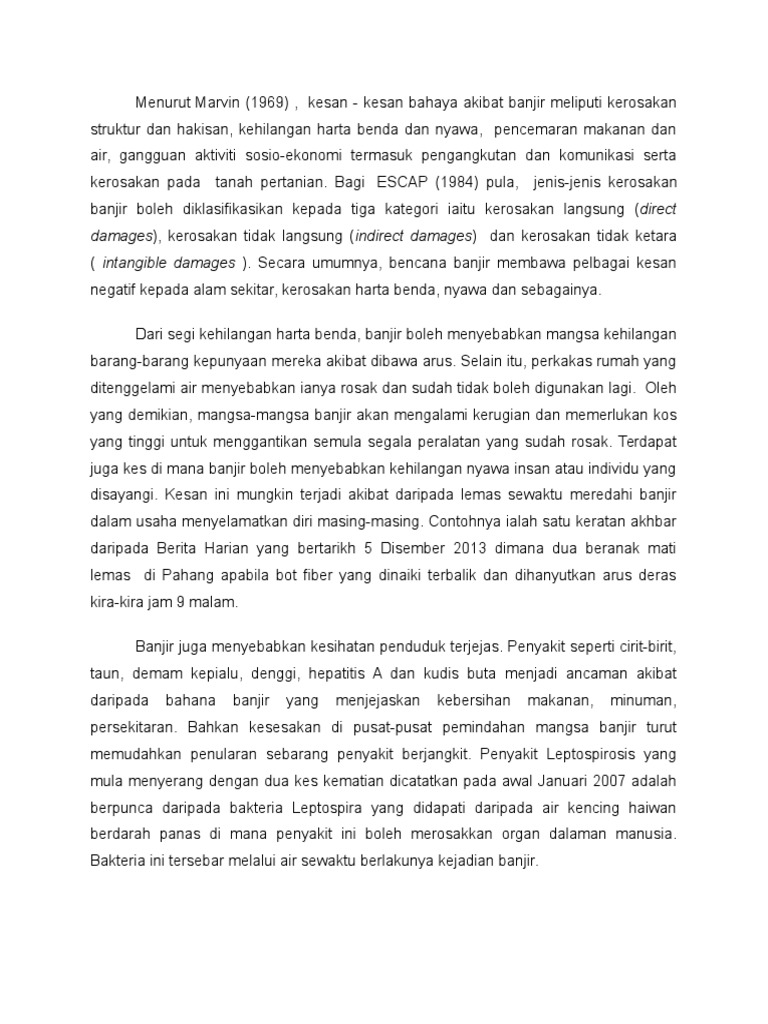 Esei Kesan Bencana Banjir Docx Banjir Adalah Antara Bencana Yang Kerap Berlaku Di Negara Ini Bencana Tersebut Ternyata Meninggalkan Pelbagai Kesan Course Hero
