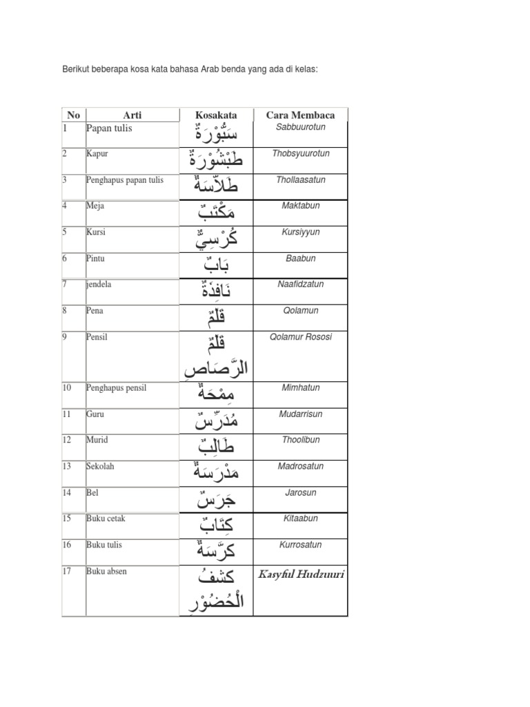 30 Kosakata Bahasa Arab Kata Benda Di Sekolah Pdf