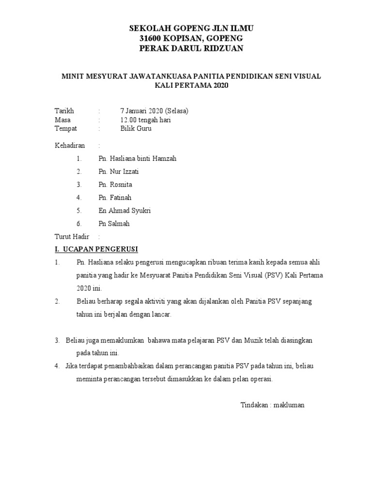Minit Mesyuarat Psv 2020 Kali 1 Pdf