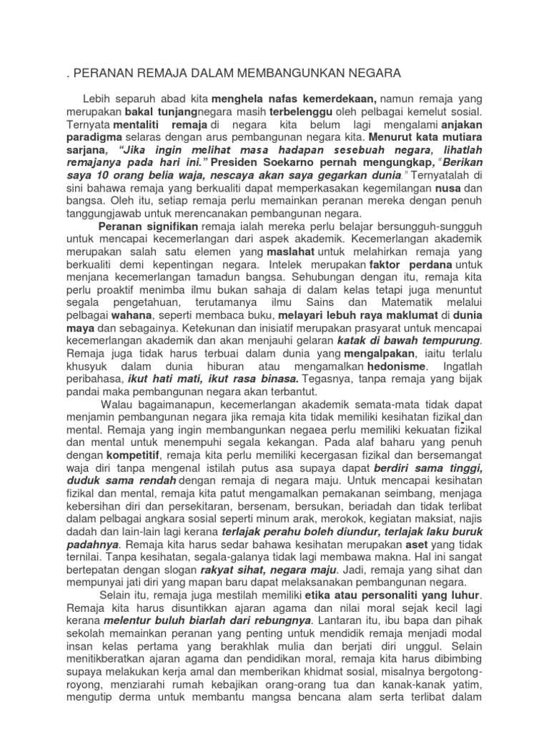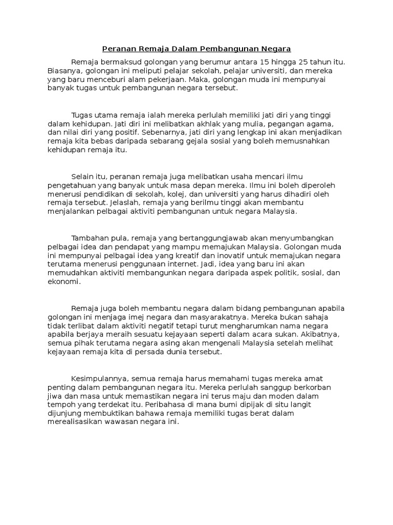 Peranan Remaja Dalam Pembangunan Negara Karangan