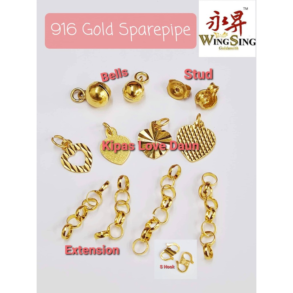 Shop Malaysia 916 Gold Sparepipes Bell Extension Love Ear Stud S Hook Leaf Fan Cover Subang S Gold 916 Shopee Singapore