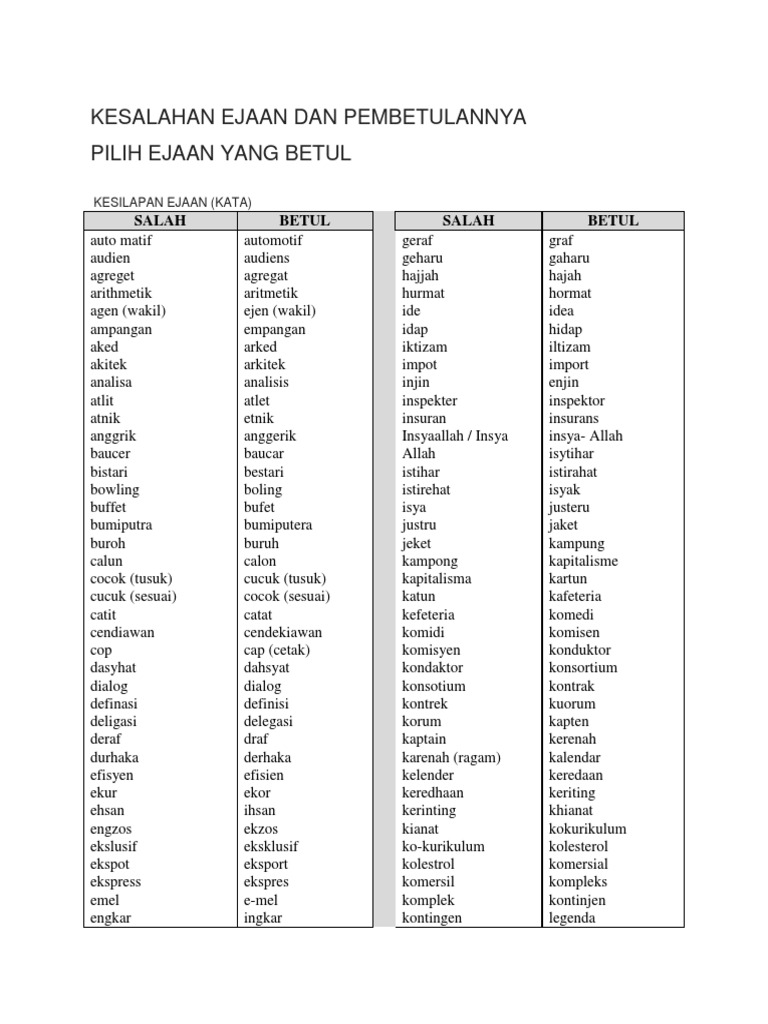 Senarai Ejaan Yang Betul Dalam Bahasa Melayu Yang Sering Kita Keliru
