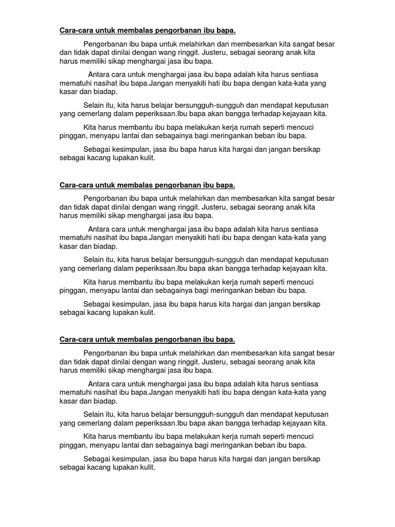 Karangan Perbahasan Tentang Cara Cara Menghargai Jasa Ibu Bapa Format Spm