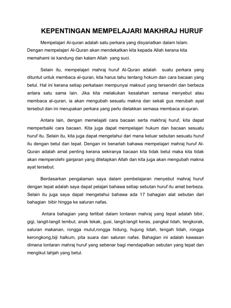 Kepentingan Mempelajari Makhraj Huruf