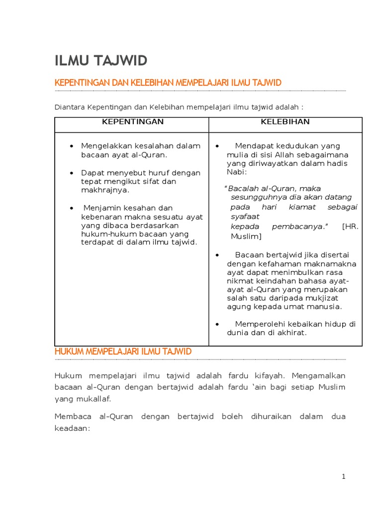Kepentingan Dan Kelebihan Mempelajari Ilmu Tajwid Ilmu Tajwid Lengkap