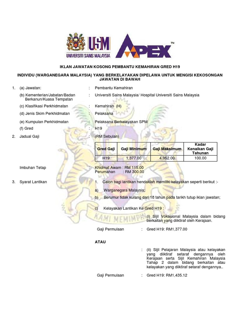 Deskripsi Tugas Gaji Dan Kelayakan Pembantu Kemahiran Gred H19 Sumber Kerjaya