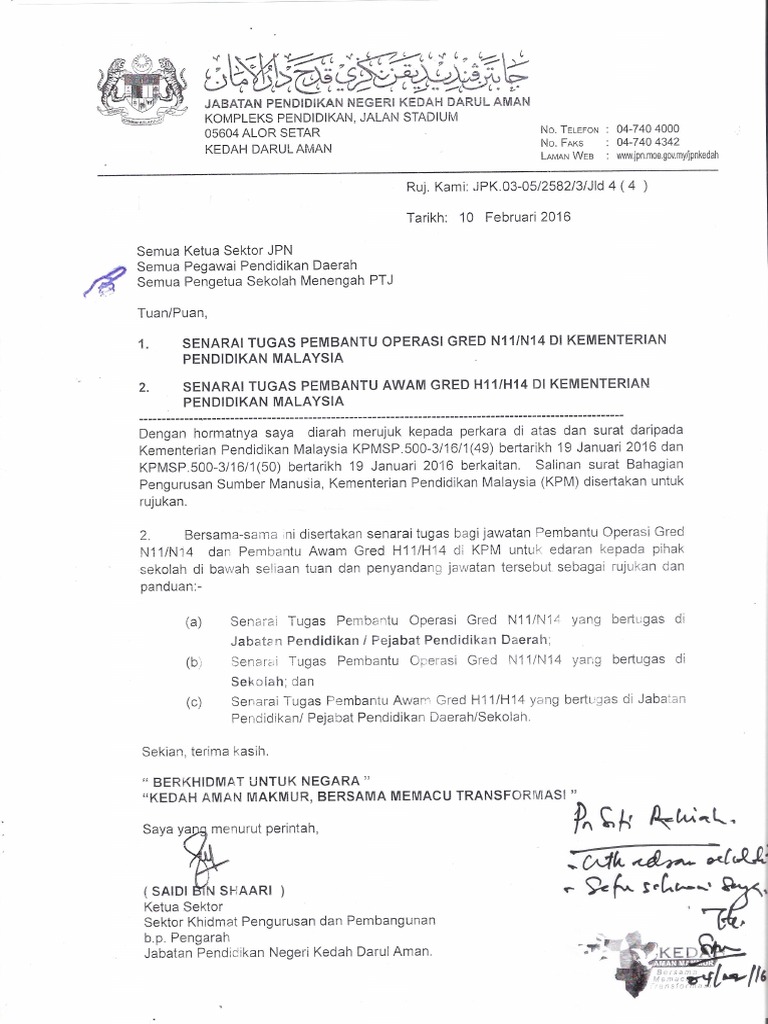 Senarai Tugas Pembantu Operasi Gred N11 Pembantu Awam Gred H11 Pdf