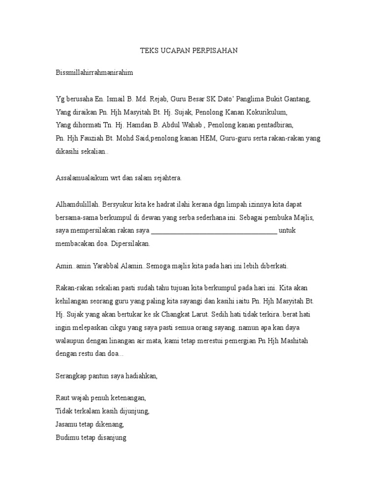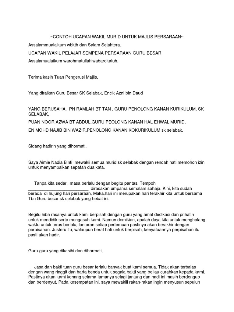 Contoh Ucapan Wakil Murid Untuk Majlis Persaraan Pdf