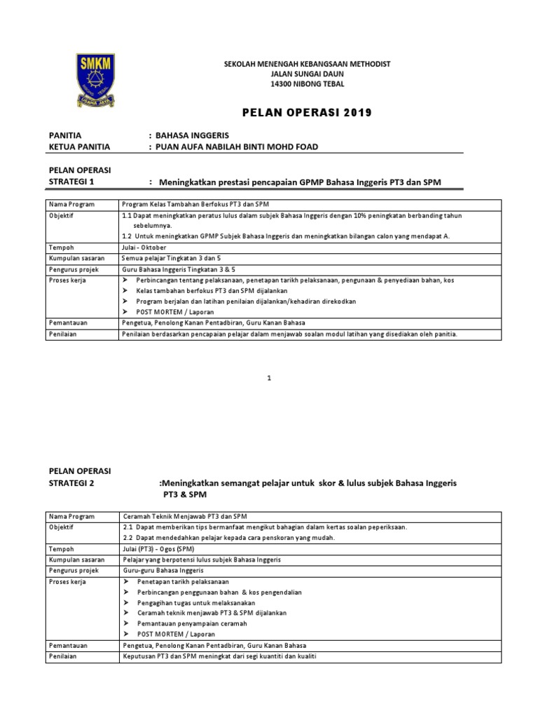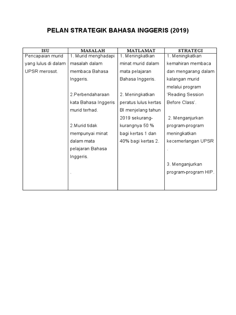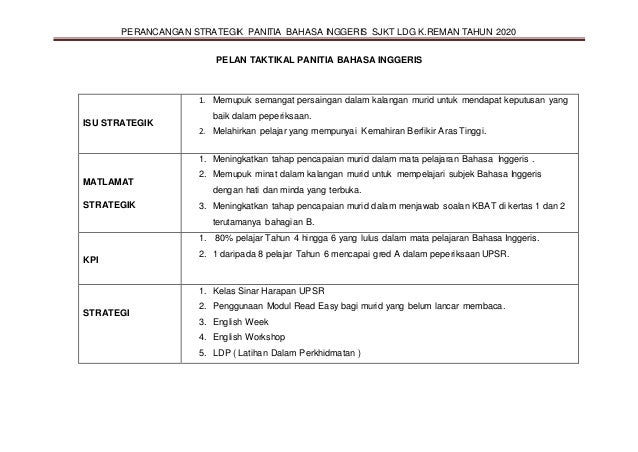 Pelan Strategik Panitia Bahasa Inggeris 2019 2021 Pdf