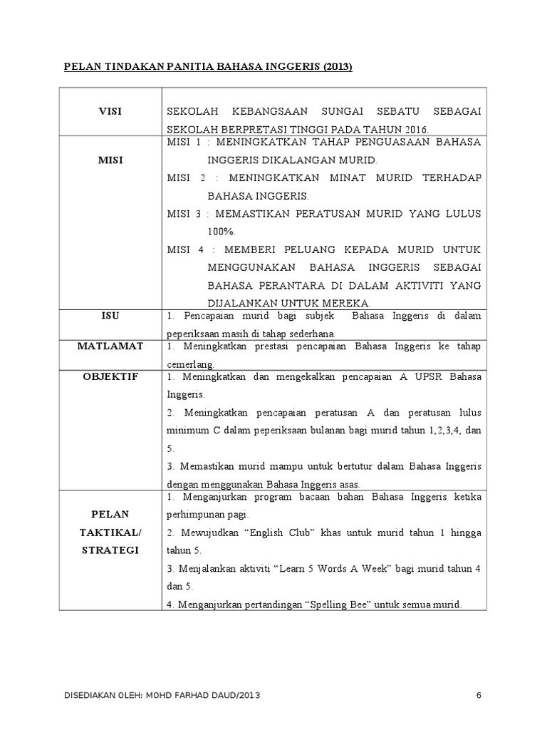 Doc Perancangan Strategik Panitia Bahasa Inggeris Wong Meiling Academia Edu
