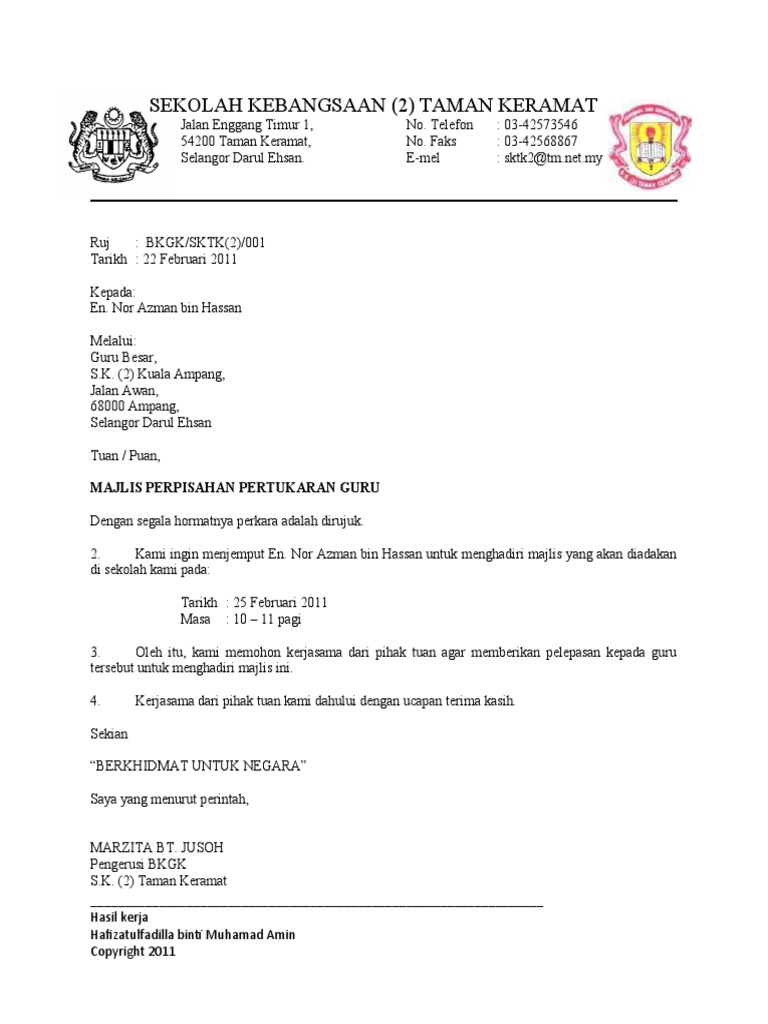 Contoh Surat Jemputan Majlis Persaraan Guru Besar Contoh Surat