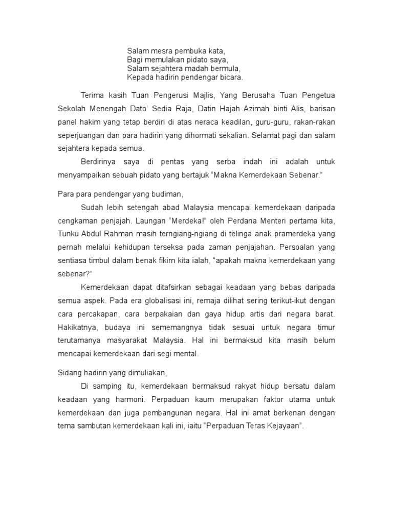 Pidato Makna Sebenar Kemerdekaan Pdf