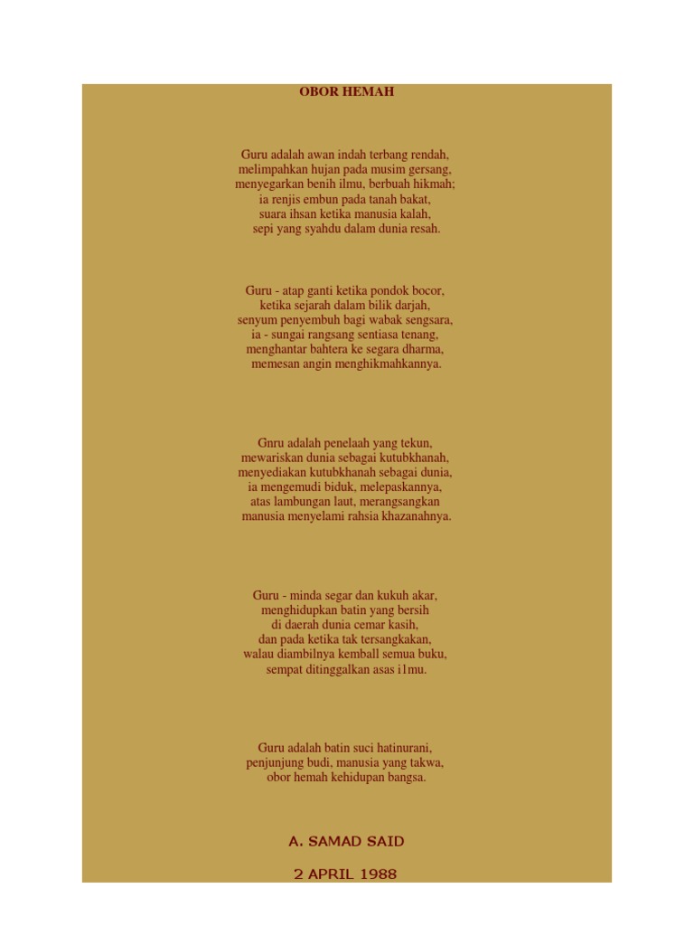 Sajak Hari Guru 2019 Obor Hemah A Samad Said Youtube