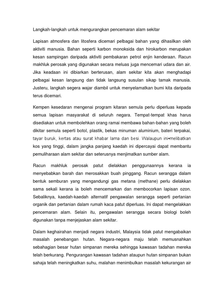 Karangan Punca Dan Langkah Mengatasi Pencemaran Alam Sekitar