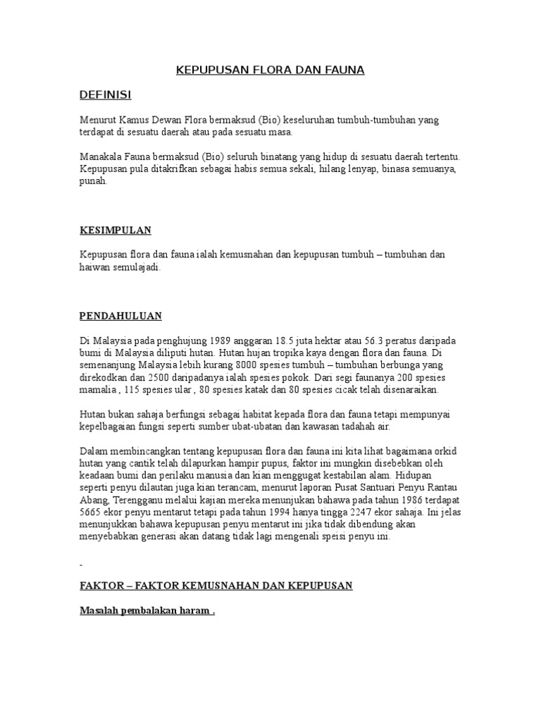 Kesan Kepupusan Flora Dan Fauna Pdf
