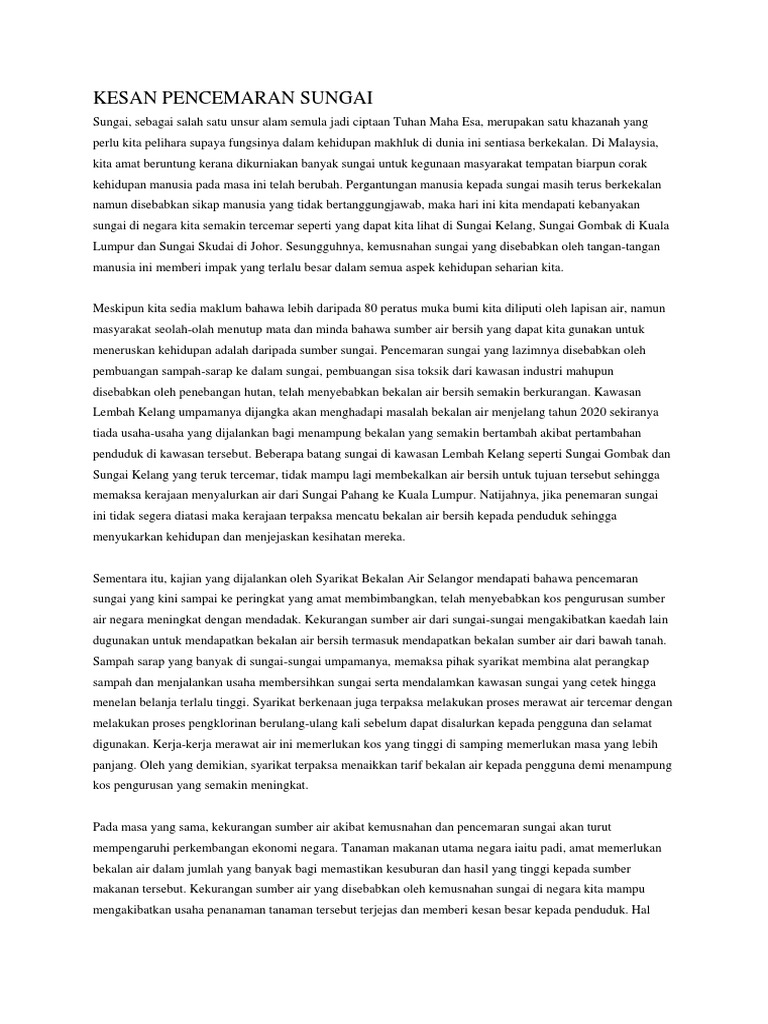 Kesan Kesan Pencemaran Sungai Terhadap Kehidupan