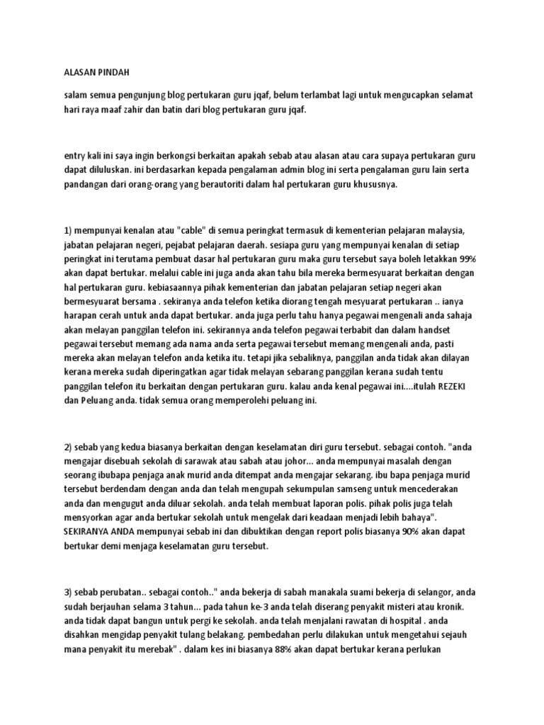 Alasan ini digunakan dengan harapan pihak bertanggungjawab akan melihat itu sebagai satu pembaziran modal insan dan seterusnya menghantar cikgu berpindah ke tempat yang dipohon. Httpspusingbangetswebappalasan-permohonan-pertukaran-tempat-kerjahtml Contoh Surat Rasmi Pertukaran Tempat Kerja Rasmi Sud. Alasan Permohonan Pertukaran Tempat Kerja cimb bank swift code malaysia penang cimb bank account number template cimb clicks app transaction history cimb click login forgot password cimb account number 12 digit chin teck plantations bhd chinese culture in malaysia article childhood obesity in malaysia statistics children s rights in malaysia cimb bank code malaysia.