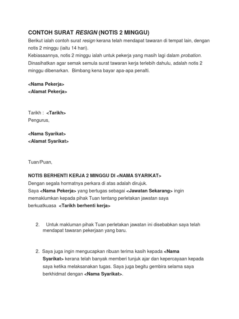 Surat Berhenti Kerja Kerana Dapat Kerja Lain Cooxeint