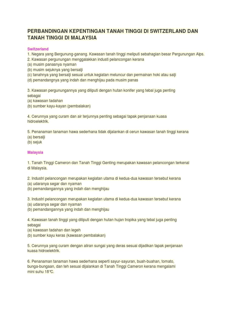 Perbandingan Kepentingan Tanah Tinggi Di Switzerland Dan Tanah Tinggi Di Malaysia