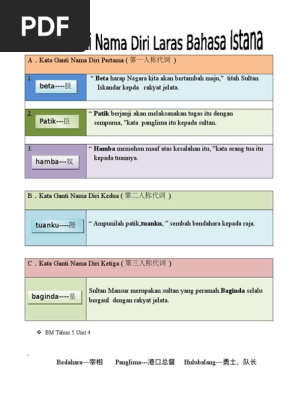 Kata Ganti Nama Diri Laras Bahasa Istana