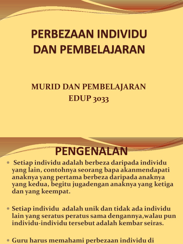 Tajuk 4 Perbezaan Individu Dalam Pembelajaran 2x Edup3033 Murid Dan Pembelajaran Topik 4 Perbezaan Individu Dan Pembelajaran Pensyarah Dr Hj Sajap Course Hero