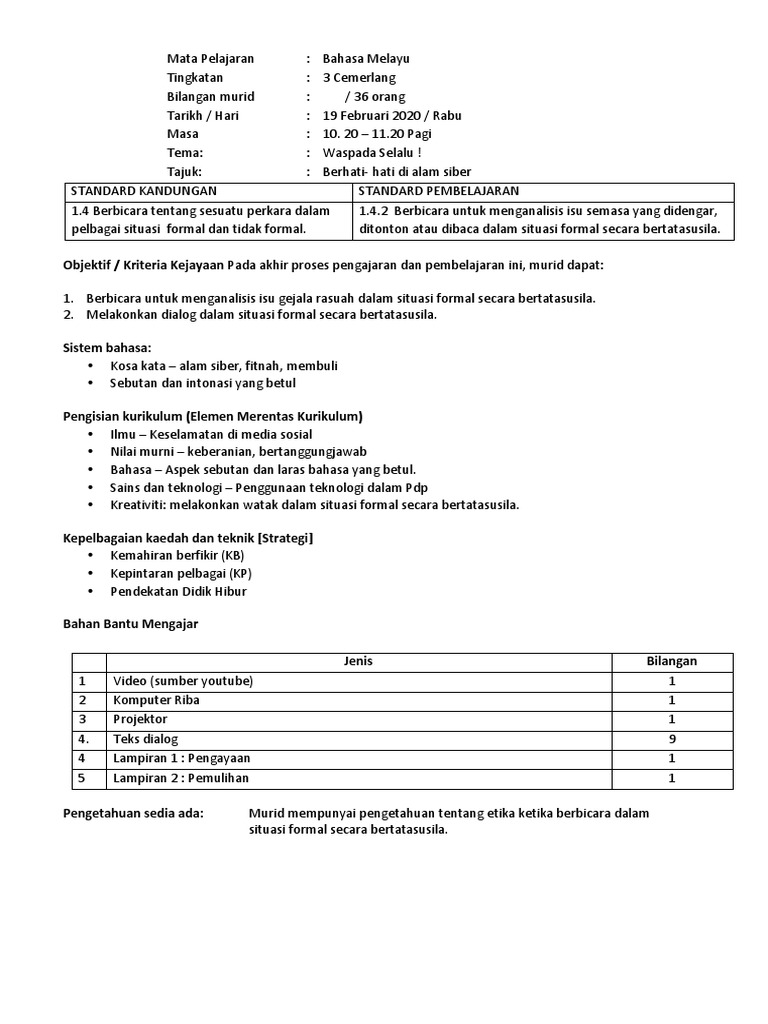 Rancangan Pengajaran Harian Mata Pelajaran Bahasa Melayu Tingkatan 4 Ihsan Bilangan Pelajar 28 Orang Masa 10 45 Interpersonal Education