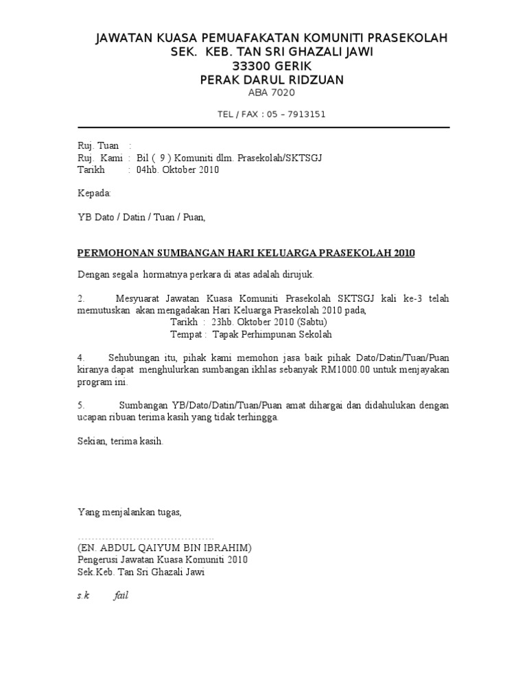Contoh Surat Rasmi Memohon Sumbangan Wang Surat Rasmi 1