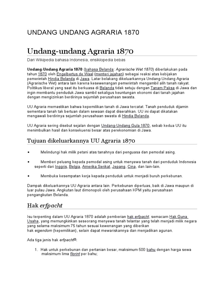 Undang Undang Agraria 1870 Tujuan Isi Hak Dan Dampaknya