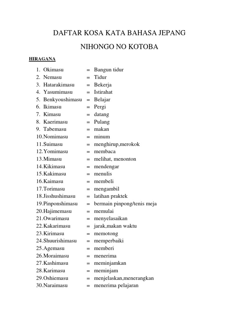 Daftar Kosa Kata Bahasa Jepang