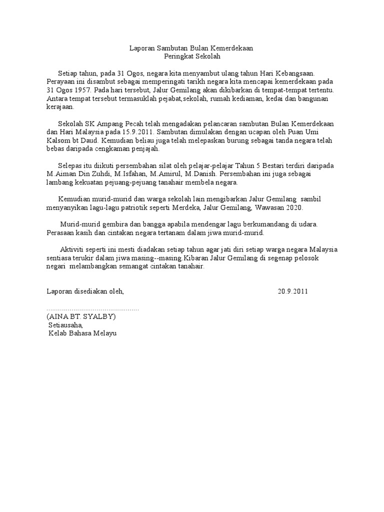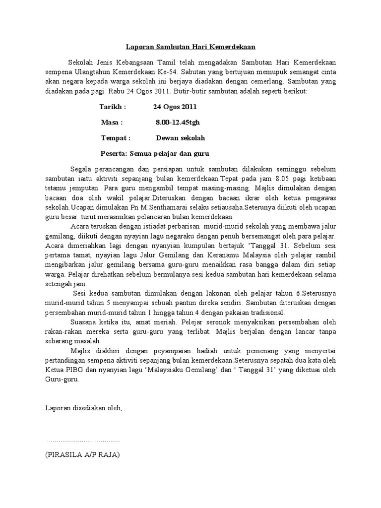 Contoh Karangan Laporan Sambutan Kemerdekaan Peringkat Sekolah Pdf