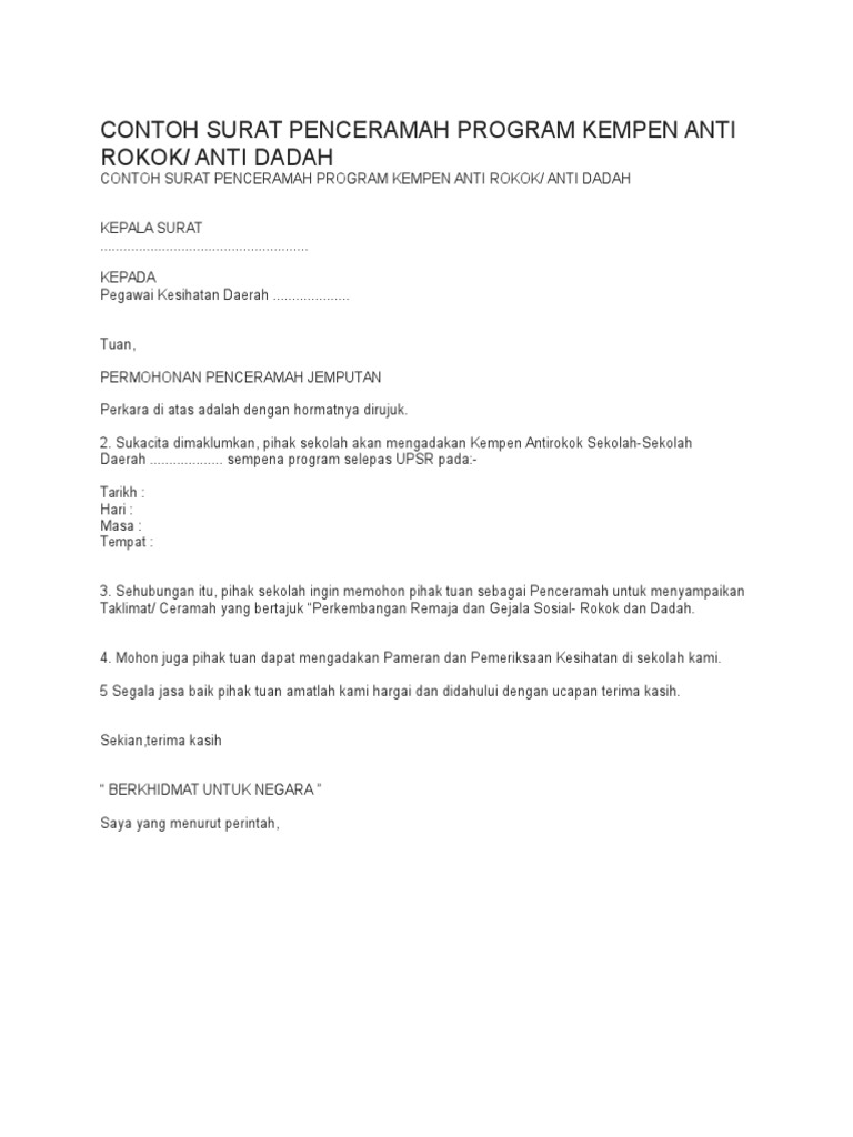 Contoh Surat Jemputan Penceramah Kem Motivasi Contoh Surat Terbaru 2020