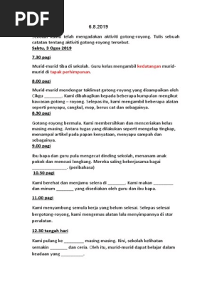 Karangan Catatan Aktiviti Gotong Royong Di Sekolah