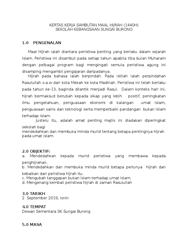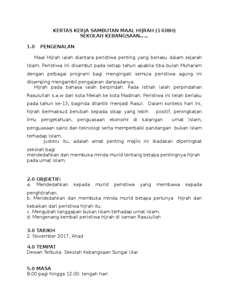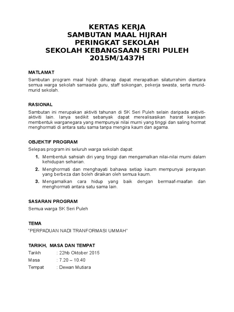 Kertas Kerja Sambutan Maal Hijrah Peringkat Sekolah