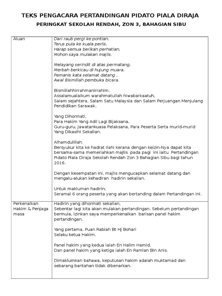 Teks Pengacara Pertandingan Pidato Piala Diraja Zon 3
