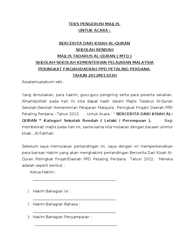 Teks Juru Acara Mtq Firqahdaerah 2012