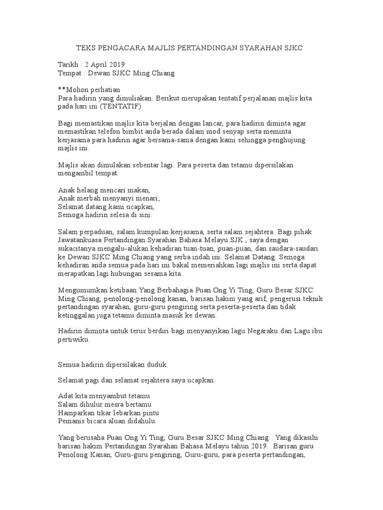 Doc Teks Mc Pertandingan Bercerita Mtq Zon Klias 2015 Nur Alia Academia Edu