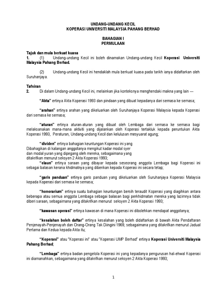 Undang Undang Kecil Koperasi Sekolah Pdf